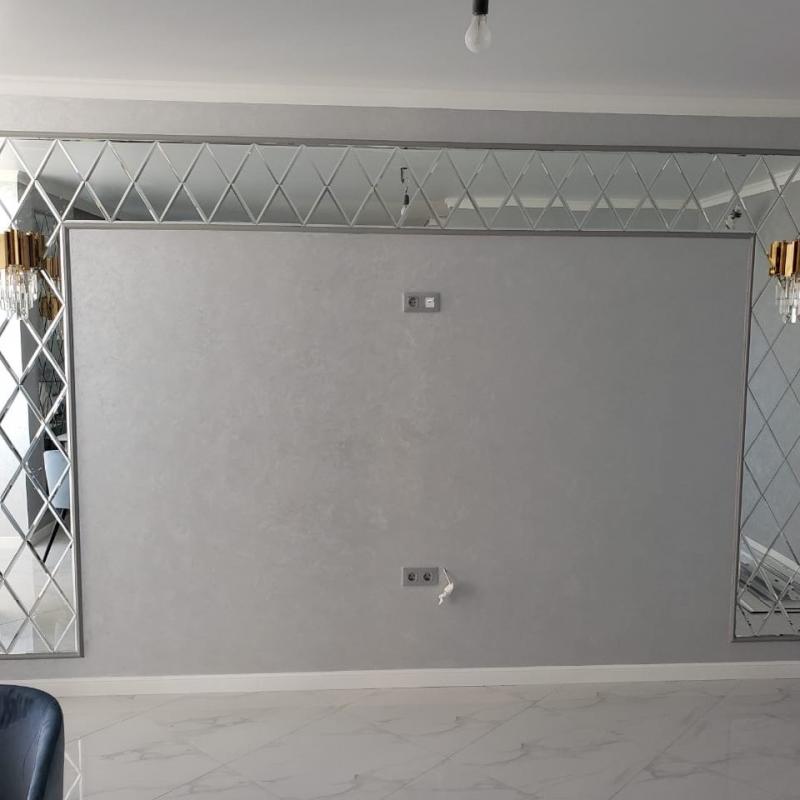 Использована зеркальная плитка "вытянутый ромб" с фацетом.